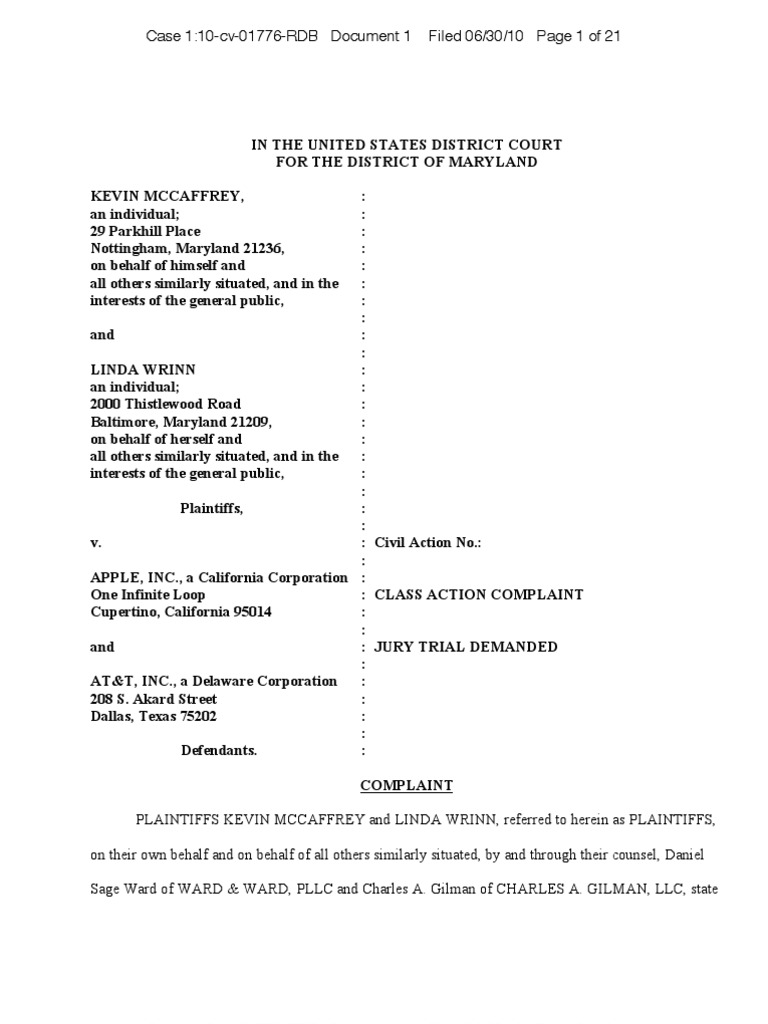 Le prime denuncie - che aspirano al rango di class action - contro Apple e AT&T per i presunti problemi di ricezione dell’iPhone 4 sono arrivate puntuali come orologi svizzeri. La prima è stata depositata nel Maryland, ma alcuni siti parlano di almeno tre class action (per ora) - altre due sarebbero state portate all’attenzione delle corti federali di California e Texas.