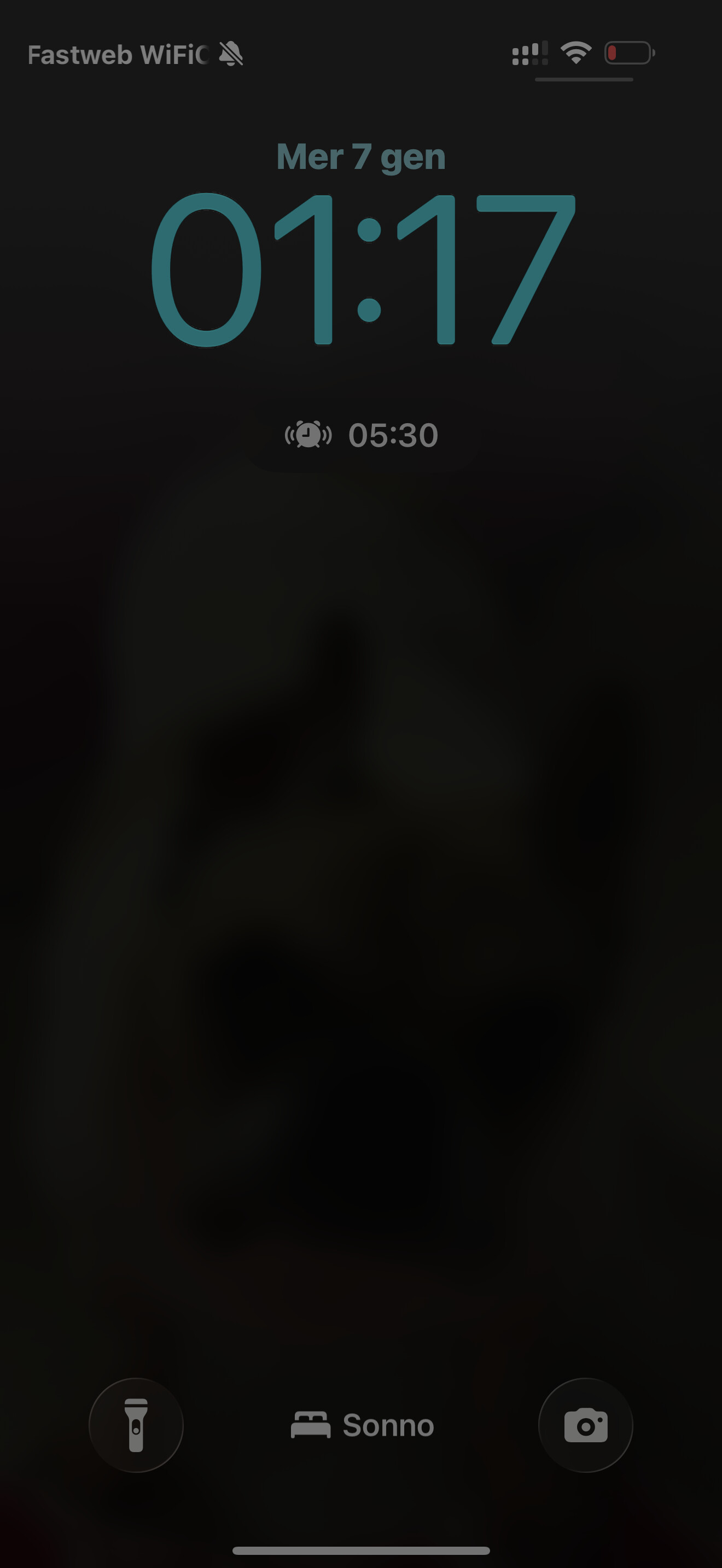 Appare infatti, ho fatto un errore, non sulla schermata di blocco ma nel centro di controllo vicino alla percentuale di batteria. Nella mia home con modalità “Personale”, non uso la modalità sonno, non compare nulla a meno di un widget.